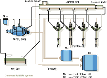 Компьютерное управление подачей топлива позволило впрыскивать его в камеру сгорания цилиндра двумя точно дозированными порциями, чего раньше сделать было невозможно. Сначала поступает крохотная, всего около милиграмма, доза, которая при сгорании повышает температуру в камере, а следом идет главный «заряд». Для дизеля — двигателя с воспламенением топлива от сжатия — это очень важно, так как при этом давление в камере сгорания нарастает более плавно, без «рывка». Вследствие этого мотор работает мягче и менее шумно. Но главное — система «Common-Rail» полностью исключает впрыск в камеру сгорания «досыльной» порции горючего. В результате расход топлива двигателем сокращается примерно на 20%, а крутящий момент на малых оборотах коленвала возрастает на 25%. Также уменьшается содержание в выхлопе сажи и снижается шумность работы мотора. Прогрессивные изменения в системе подачи топлива к форсункам дизелей стали возможны лишь благодаря развитию электроники. Источник